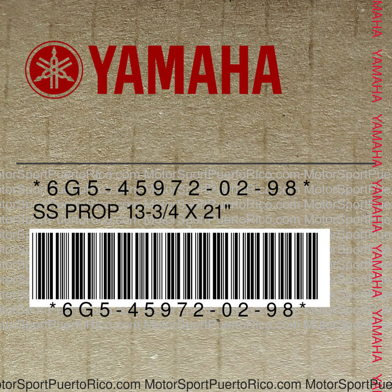 YAMAHA Original OEM. Part Number 6G5-45972-02-98 and/or Part Number 6G5-45972-02-00. Description: SS PROP 13-3/4 X 21\"